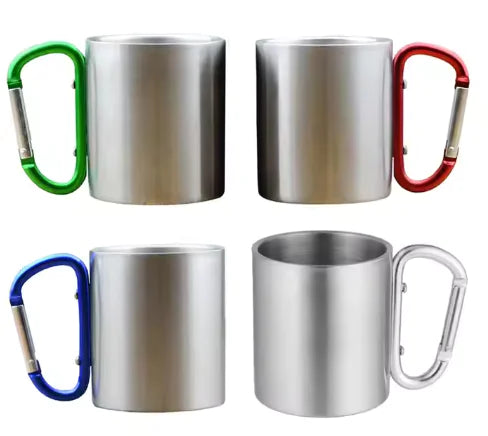 Enjoy your outdoor adventures with this durable and lightweight Stainless Steel Double-Layer Camping Mug, designed for convenience and portability. Featuring a sturdy carabiner handle, this mug easily clips onto backpacks, making it ideal for camping, hiking, climbing, and travel.